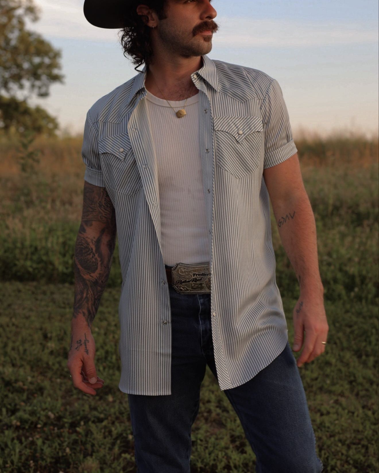 The Newport has single point front pockets, short sleeves, subtle yoke and pearl snaps.